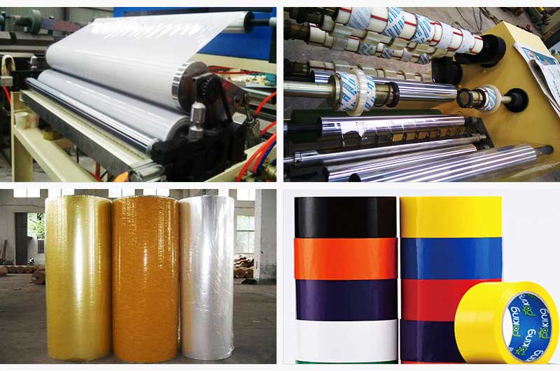 4.一機多用:該機除能生產常規不干膠帶外,還可生產各類寬膠帶、窄膠帶、透明膠帶、彩色膠帶、印字膠帶(可同時印出三種不同顏色效果)等多種膠帶